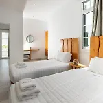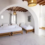 A Mykonos Town városi hotel szobákat kínál tornáccal és erkéllyel, klímaberendezéssel, valamint síkképernyős műholdas TV-vel. Kényelme biztosítása érdekében elektromos vízforralót, hűtőt és konyhai edényeket fog találni. A kellemes részletek közé tartozik a külön WC és zuhanyzó, valamint a hajszárító és fürdőlepedők.